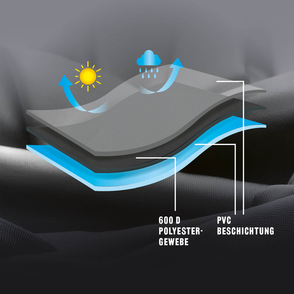 - Vedenpitävä PVC-sisäpinnoitteella, vedenpitävyys jopa 3000 mm