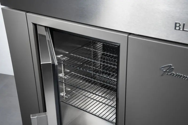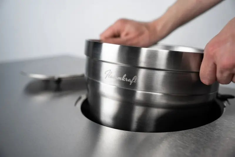 Den solida arbetsytan i 4 mm borstat rostfritt stål rymmer både iskylare och generösa arbetsytor, och hela modulen är byggd för att matcha kvaliteten och formspråket i Flammkrafts premiumsortiment. Tack vare de dolda hjulen är BLOCK B lätt att flytta, samtidigt som höjdjusterbara fötter ger stabilitet när den står på plats.