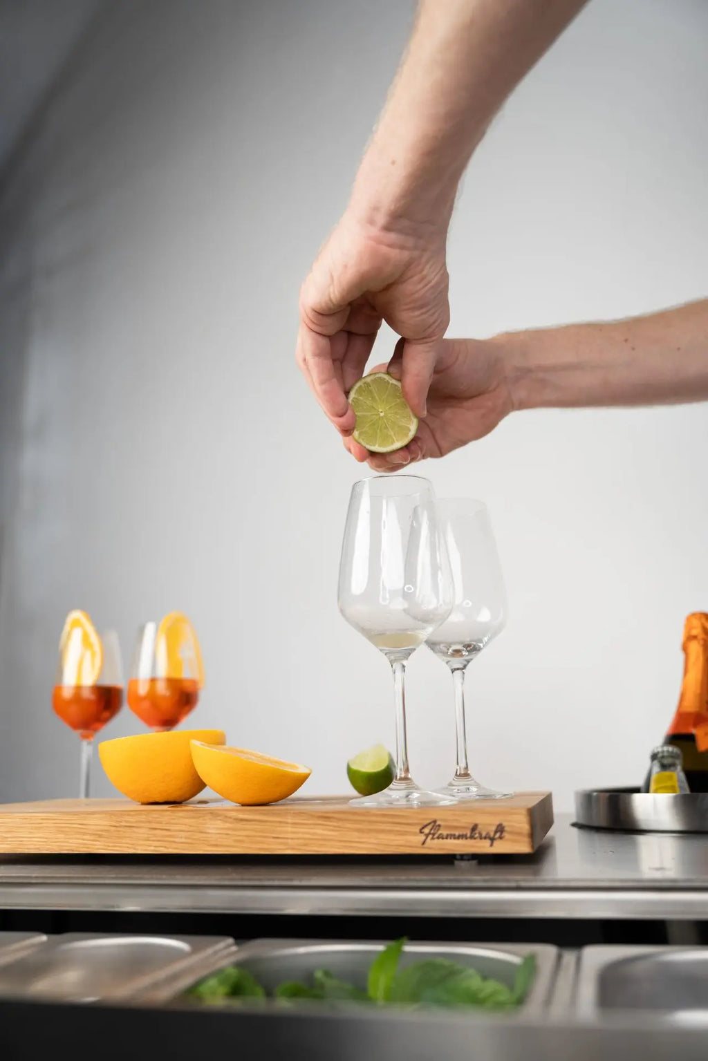 Skär- och serveringsbräda ingår för snabb drink- och matberedning.